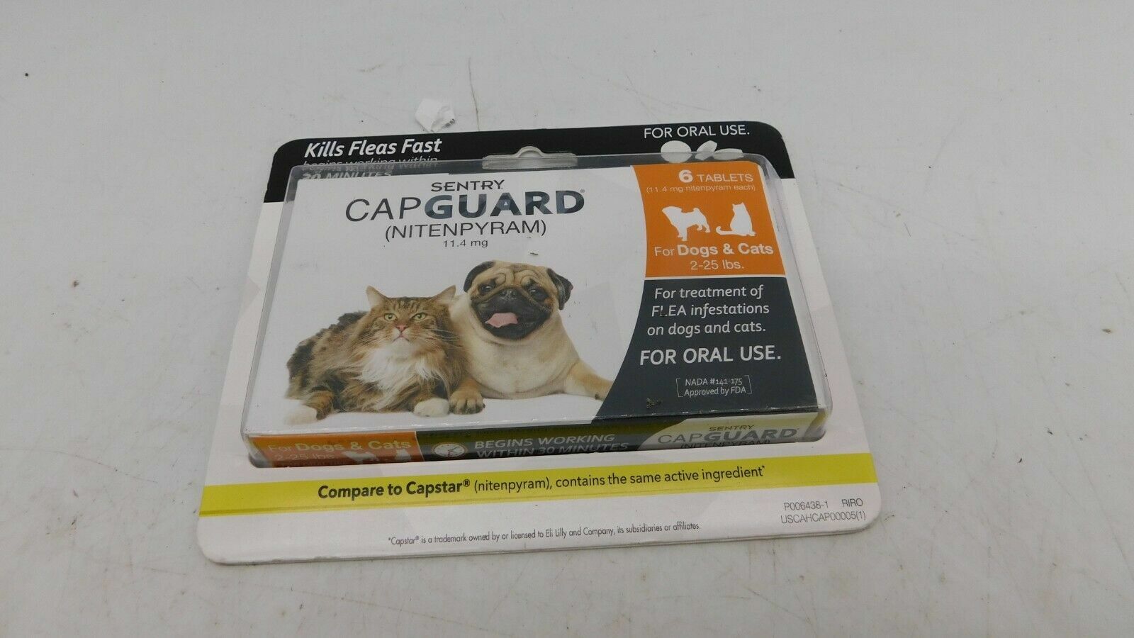 Capstar nitenpyram is a fast acting flea treatment tablet for use in dogs and cats that starts killing fleas in only 30 minutes. Kills adult fleas on your dog within 4 hours of administration. It is available in packages for dogs and cats 2 25 pounds and dogs 25 1 125 pounds. Capstar kills adult fleas that may cause flea allergy dermatitis.